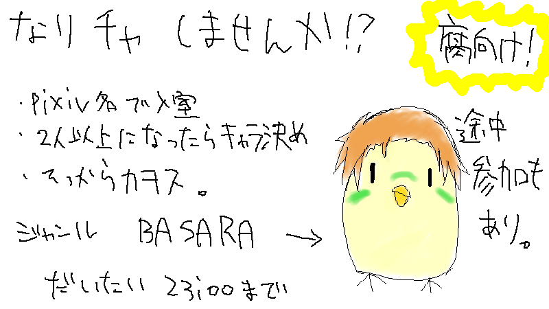 とりあえず明日なりチャしよう。うん。